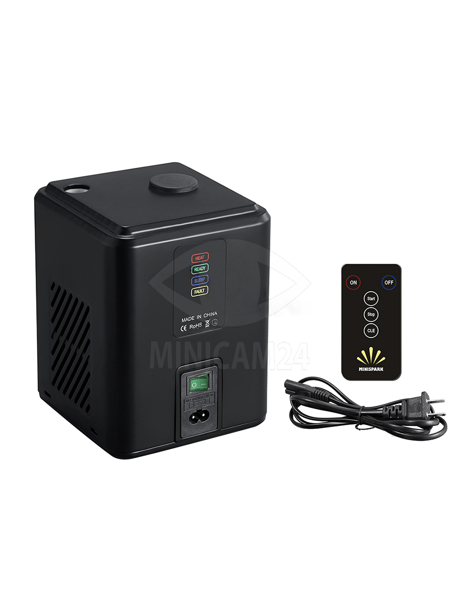 Генератор холодных искр имеет мощность 350 Вт и работает от сети 110 / 220 В. Высота фонтана достигает до 3,5 метров, что обеспечивает впечатляющий визуальный эффект. Встроенная система защиты автоматически отключает устройство после 22 секунд непрерывной работы, а также предотвращает перегрев. При необходимости можно повторно запустить спаркуляр после короткого охлаждения.