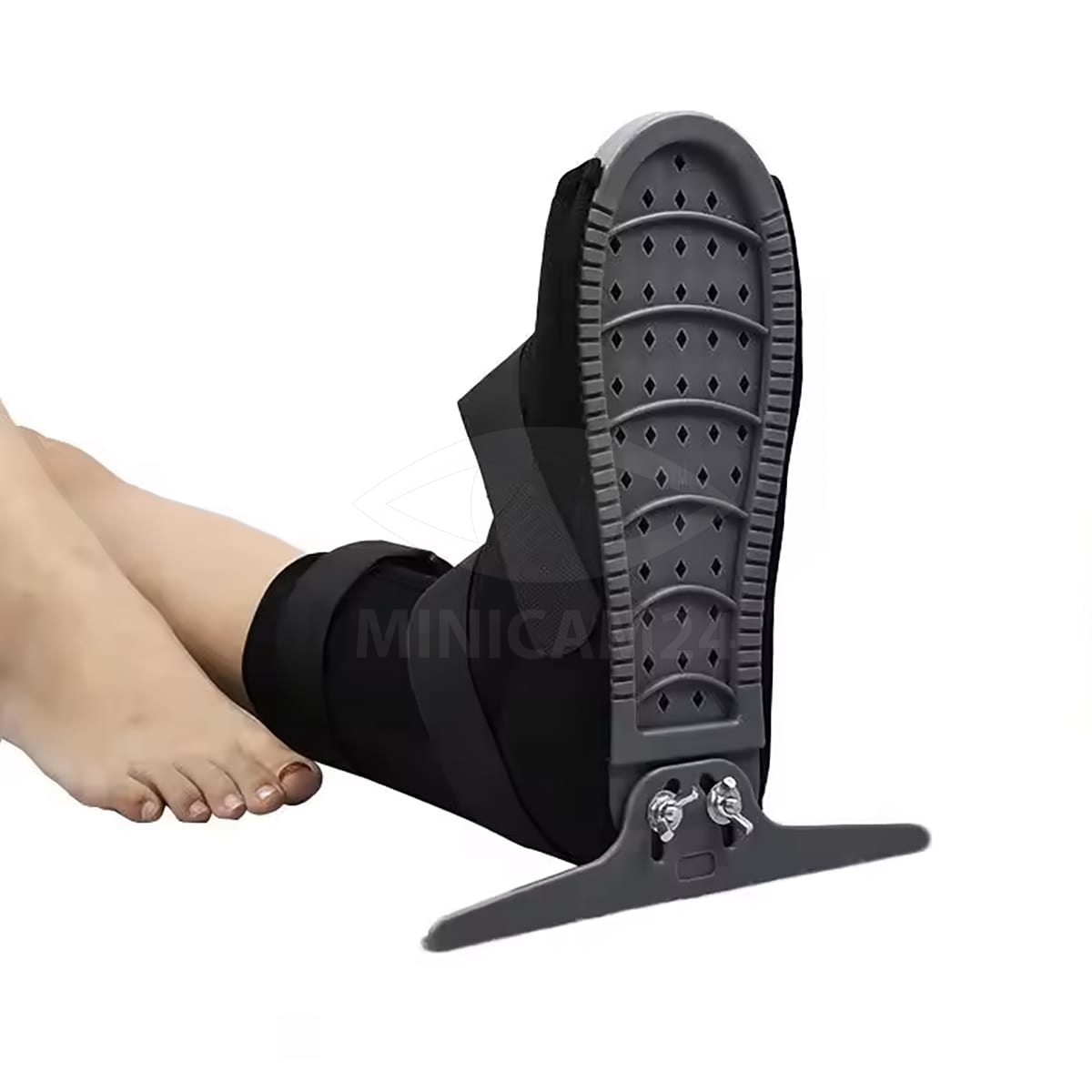 Конструкция ортеза включает многоугольный регулируемый рычаг, который позволяет адаптировать фиксирующие параметры в зависимости от положения пациента и нужного уровня поддержки.